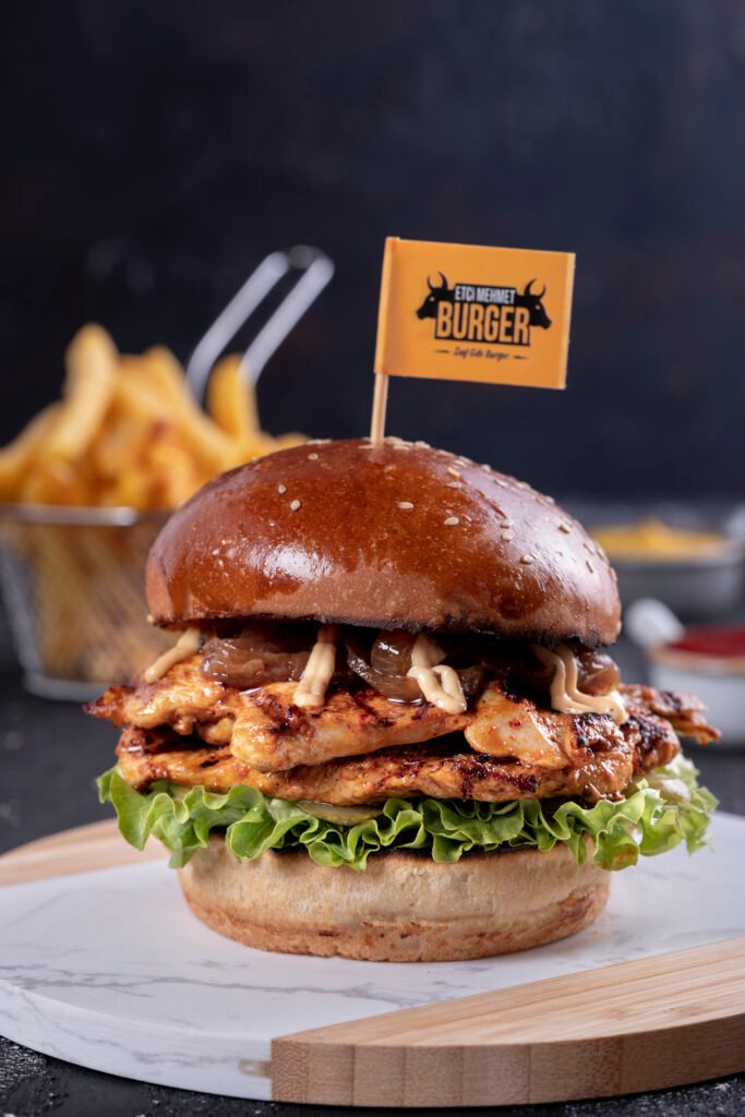 Çıtır Chicken Burger İçindekiler:Özel Paneli Çıtır Tavuk, Peynir, Kuru Soğan, Turşu, Yeşillik, Etçi Mehmet Özel SOS ve Patates Kızartması ile Fiyat:120gr 329₺, 180gr 399₺